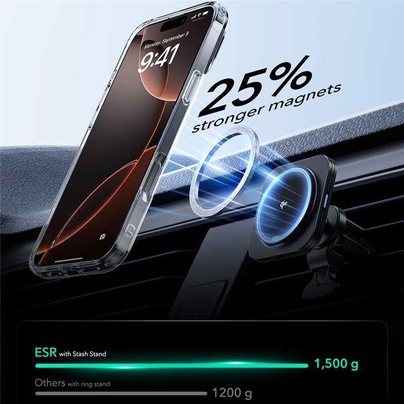 با این قاب ESR Classic Hybrid HaloLock، شما نه تنها از گوشیتان به بهترین شکل محافظت میکنید، بلکه یک پایه استند مخفی و پشتیبانی از شارژ بیسیم مغناطیسی را هم همیشه همراه دارید.