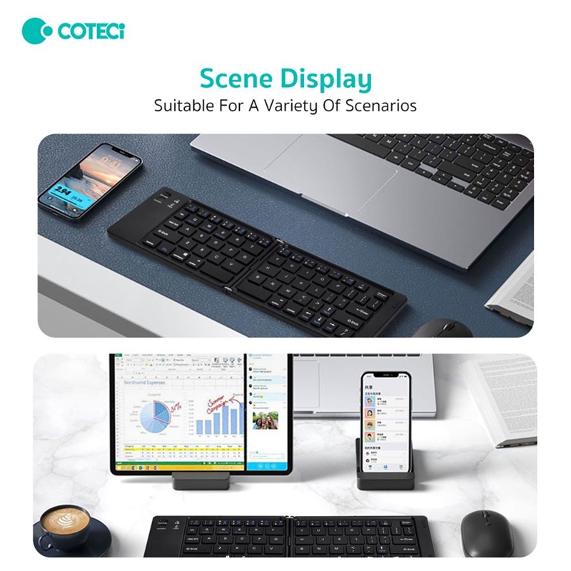 کیبورد بلوتوثی تاشو کوتتسی مدل Coteetci 64017 یک همراه ایدهآل برای کسانی است که به دنبال تایپ راحت، سریع و در عین حال قابل حمل هستند. این کیبورد با طراحی تاشو و وزن سبک، بهراحتی در کیف یا حتی جیب جا میشود و شما میتوانید آن را همیشه همراه خود داشته باشید.