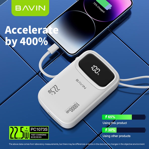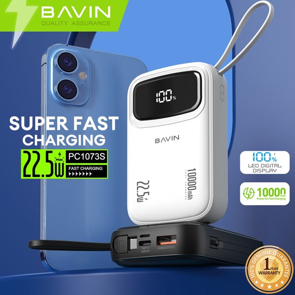 پاوربانک Bavin PC1073s یک شارژر همراه جمعوجور و قدرتمند است که با ظرفیت 10000 میلیآمپر ساعت و توان خروجی 22.5 وات طراحی شده تا دستگاههای شما را با سرعت بالا و ایمن شارژ کند. این پاوربانک گزینهای عالی برای کسانی است که به دنبال قدرت، سبک بودن و حمل آسان هستند.