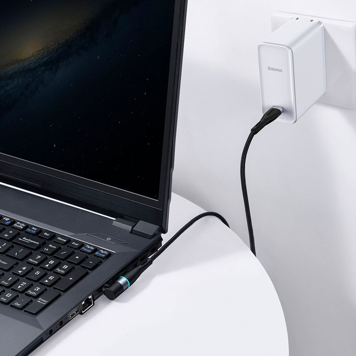 همانطور که گفتیم یک سر شارژر لپ تاپ 100 وات بیسوس از نوع تایپ سی و سر دیگر آن DC تخت است. توان خروجی کلی به کمک کانکتور تایپ سی PD تا 100W می‌رسد و اجازه می‌دهد تا بتوانید رنج گسترده‌ای از لپ تاپ های بالای45W را با آن شارژ کنید.