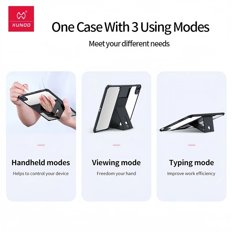 کاور ژاند مدل XUNND Stand Holder: حفاظت و کارایی در یک قاب محافظت از دستگاههای دیجیتال، از جمله آیپد، یکی از ضروریترین نکات در نگهداری آنهاست. کاورها باید ضمن حفظ زیبایی آیپد، از آن در برابر خطراتی مانند شوک، ضربه و سقوط محافظت کنند. کاور ژاند مدل XUNND Stand Holder با طراحی منحصر به فرد خود، ترکیبی از زیبایی و حفاظت را به ارمغان میآورد. این کاور دارای استندی با کیفیت در پشت قاب است که امکان استفاده از آیپد در زوایای مختلف را برای طراحی، تماشای فیلم یا کارهای روزمره فراهم میکند. کاور ژاند مدل XUNND Stand Holder از بهترین متریالهای اولیه شامل PC شفاف و فشرده و TPU نرم و مقاوم ساخته شده است. پشت کاور از PC کاملاً شفاف تهیه شده که زیبایی آیپد را به خوبی نمایش میدهد و مقاومت بالایی در برابر ضربه و خط و خش دارد. کنارههای کاور از TPU انعطافپذیر و نرم طراحی شدهاند که برشهای دقیق آن دسترسی به درگاهها را آسان کرده و قرارگیری دستگاه داخل کاور را به بهترین شکل انجام میدهد. انعطافپذیری و نرمی TPU ضربهها را جذب کرده و از انتقال آنها به دستگاه جلوگیری میکند، بهویژه با توجه به وزن آیپدها که سقوط آنها با شدت بیشتری همراه است. این کاور راحتی را در هنگام در دست داشتن آیپد در استفاده طولانیمدت فراهم میکند. یکی از ویژگیهای برجسته کاور ژاند مدل XUNND Stand Holder وجود بامپرهایی است که در چهار گوشه کاور قرار داده شدهاند. این بامپرها آیپد شما را در برابر سقوط محافظت کرده و لبههای برجسته کاور از تماس صفحه نمایش با سطح صاف جلوگیری میکنند. علاوه بر این، کاور به گونهای طراحی شده که گلس صفحه نمایش استاندارد را بلند نمیکند. این کاور دارای پوششی کامل برای لنز دوربین است که لنزها به درستی جای خود قرار میگیرند و لبههای دقیق 0.8 میلیمتری برآمده از لنزها حفاظت میکنند. کاور ژاند مدل XUNND Stand Holder تمامی نیازهای شما را برآورده میکند و تجربهای بینظیر از استفاده از آیپد را برای شما به ارمغان میآورد. با خرید این کاور، شما همواره آیپد خود را در برابر خطرات محافظت میکنید و همزمان از ظاهری زیبا و مدرن برخوردار میشوید.
