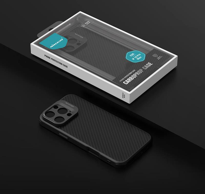 کاور نیلکین مدلCarboProp Magneticاز ترکیب پلاستیک سخت،TPUو روکشFiberساخته شده است همچنین قاب ترکیبی ازعناصر کلاسیک،مد و محافظ میباشد و دارای محافظ دوربین از جنس فلز است. این قاب با داشتن اسلاید کمرا استند مگنتی محافظ بسیار خوبی برای دوربین گوشی موبایل شما میباشد که میتوانید به عنوان پایه استند رو میزی هم استفاده کنید.همچین از قابلیت شارژ بی سیم مگ سیف مغناطیسی نیز پشتیبانی میکند که ارزش خریدن این کاور را چند برابر می نماید.این کاور طبق گفته های شرکت سازنده 5 برابر مقاوم تر از فولاد میباشد.سطح بیرونی این قاب دارای خطوط مورب فیبری می باشد که خواصی مانند ضد سایش، ضد لغزش ، ضد گرد و غبار و ضد اثر انگشت به همراه دارد، تمیز کردن این قاب محافظ بسیار آسان است.کاور نیلکین مدل CarboProp Magnetic تمامی پشت گوشی،لبه های بالا،پایین و اطراف گوشی را تحت پوشش قرار میدهد و در برابر ضربه ها،محافظت بسیار فوق العاده ای از گوشی شما انجام می دهد.کاور نیلکین مدل CarboProp Magnetic کلید های گوشی موبایل،تحت پوشش و محافظت خود قرار میدهد و عملکرد عالی ای دارد.با توجه به هندسه و طراحی زیبای گوشی،پایین و بالا این قاب بسته می باشد تا دسترسی بهتری به پورت های گوشی و محافظت بیشتر انجام شود همچنین روی بدنه این گارد خط های موربی وجود دارد که ظاهری زیبا و شیک به گوشی شما می دهد.کاور نیلکین مدل CarboProp Magnetic دارای محافظ کمرا استندی می باشد که میتوان به عنوان پوشش و محافظ لنز های دوربین استفاده کرد و یا به عنوان پایه استند رو میزی از آن استفاده کرد که دارای لولای فلزی با کیفیتی می باشد که به راحتی باز و بسته می شود.ضخامت این بخش در حدی است که چندان روی ظرافت گوشی تاثیر منفی نداشته باشد و بتوانید به شکل طولانی مدت بدون دل‌زدگی، از قاب استفاده کنید.در پشت قاب کیت مخصوص سازگار با شارژر و باتری های بی سیم(Magsafe) وجود دارد.ویژگی بعدی کاور نیلکین مدل CarboProp Magnetic نسبت به دیگر کاور ها، بهره مندی از قابلیت مگنتی است.به جهت این ویژگی شما می توانید به سادگی از شارژرهای مگ سیف استفاده کرده و مانعی از این بابت برای شما وجود نداشته باشد.در این رابطه باید گفت که شما می توانید بدون نیاز به در آوردن گوشی از قاب، شارژر MagSafe را به پشت گوشی(روی قاب) زده و به راحتی گوشی خود را شارژ کنید.