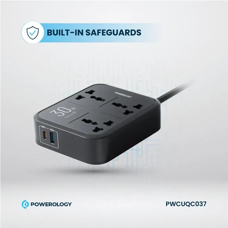 چندراهی پاورولوژی PWCUQC037 به سیستم‌های حفاظتی هوشمند مجهز شده تا از دستگاه‌های متصل در برابر افزایش جریان، اتصال کوتاه، نوسانات ولتاژ و گرمای بیش از حد محافظت کند. طراحی بدنه از مواد مقاوم و ضدحریق ساخته شده که ایمنی کامل را در استفاده روزمره تضمین می‌کند.