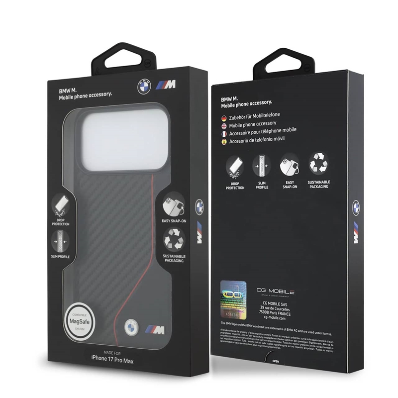 قاب BMW بی ام دبلیو راهراه با خط اریب قرمز مناسب برای Apple iPhone 17 Pro Max