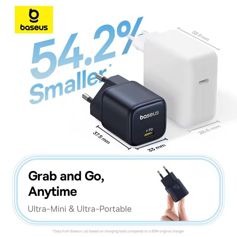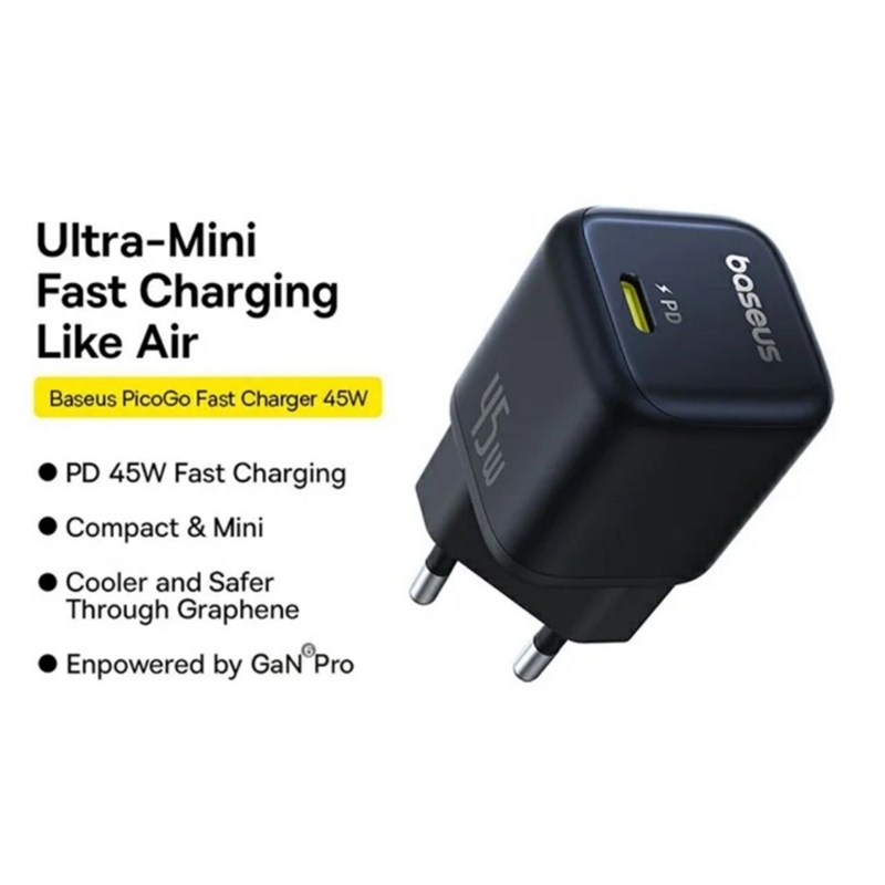 شارژر دیواری فست شارژ بیسوس Baseus PicoGo GaN 45W مدل P10176800123-00 یک آداپتور قدرتمند و جمعوجور است که با استفاده از فناوری GaN علاوهبر کاهش ابعاد و وزن، راندمان و سرعت شارژ را به شکل چشمگیری افزایش میدهد. این شارژر با توان 45 وات امکان شارژ سریع گوشیهای هوشمند، تبلتها و حتی برخی لپتاپهای سازگار را فراهم میکند.