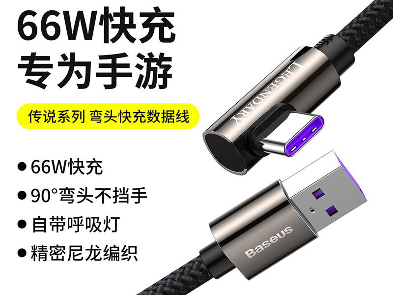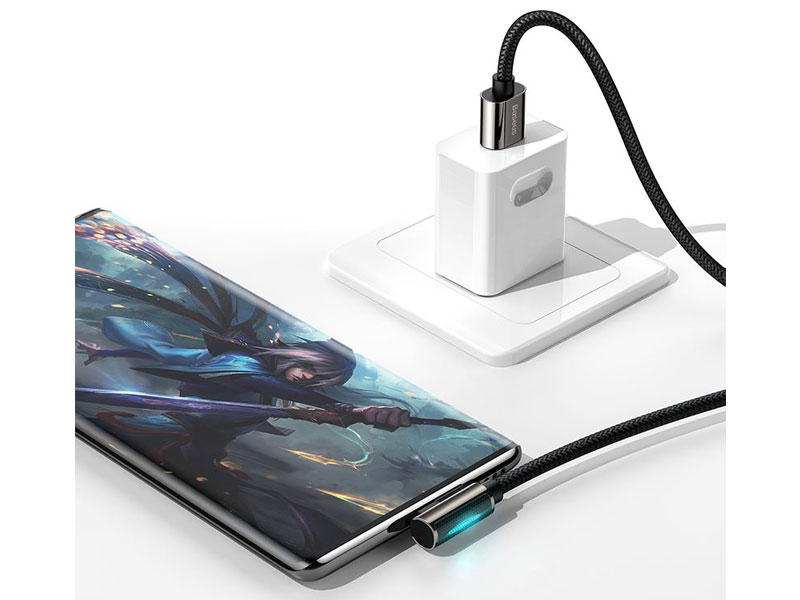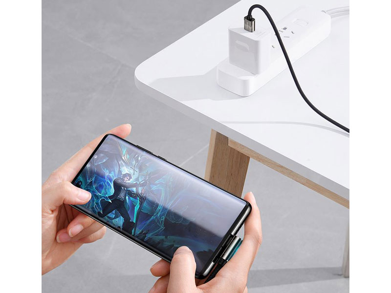 اگر گیمر باشید حتما پیش آمده که بخواهید با گوشی بازی کنید ولی شارژ نداشته باشد. از طرفی بازی کردن با گوشی در حال شارژ هم خیلی دست و پا گیر است و هم ممکن است باعث خراب شدن کابل شود. کابل شارژ تایپ سی بیسوس Baseus Legend Series Fast Charging Data Cable USB to Type C یک کابل 1 متری نسبتا بلند است که دارای رابط تایپ سی خمیده مخصوص گیمرها می‌باشد.