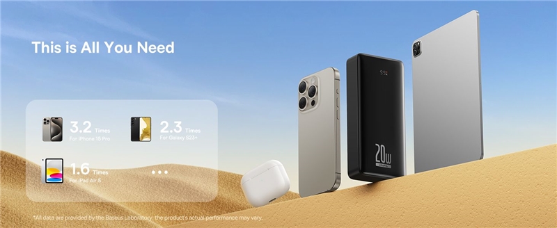 با ظرفیت چشمگیر 18400 میلی‌آمپر ساعت، پاوربانک Baseus LifePO4 توانایی شارژ چندباره‌ی انواع گوشی‌های هوشمند، تبلت‌ها، هدفون‌های بی‌سیم و ساعت‌های هوشمند را دارد. اگر مدت زیادی در سفر یا خارج از منزل هستید، این پاوربانک شما را از دغدغه‌ی اتمام شارژ دستگاه‌ها بی‌نیاز می‌کند.