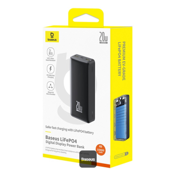 پاوربانک Baseus LiFePO4 Digital Display Power Bank (18400mAh) یکی از پیشرفته‌ترین و ایمن‌ترین پاوربانک‌های برند بیسوس است که با بهره‌گیری از سلول‌های باتری LiFePO4، عملکردی پایدار، ایمن و بادوام را ارائه می‌دهد. این پاوربانک با ظرفیت بالا، شارژ سریع 20 وات، نمایشگر دیجیتال و مقاومت حرارتی فوق‌العاده، گزینه‌ای ایده‌آل برای شارژ سریع و مطمئن انواع دستگاه‌های هوشمند به شمار می‌رود.