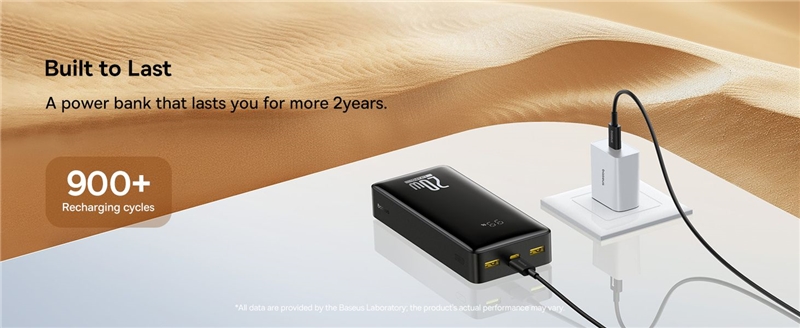سلول‌های پاوربانک Baseus LifePO4 (Lithium Iron Phosphate) به‌کاررفته در این پاوربانک از جدیدترین نسل باتری‌ها هستند که در خودروهای برقی نیز مورد استفاده قرار می‌گیرند. این نوع سلول‌ها نسبت به باتری‌های لیتیوم‌یونی رایج، ایمنی بالاتر، پایداری حرارتی بیشتر و طول عمر حدود سه برابری دارند. نتیجه‌ی این فناوری، پاوربانکی است که سال‌ها بدون افت عملکرد قابل استفاده خواهد بود.