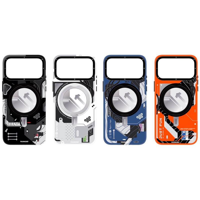 قاب Youngkit Cyberpunk 360 Magsafe Stand ترکیبی از طراحی مدرن و فانتزی سایبرپانک، محافظت حرفهای و امکانات کاربردی است. این قاب برای کاربرانی طراحی شده که به ظاهر آیندهنگر، تکنولوژی مدرن و استفاده راحت از گوشی اهمیت میدهند.