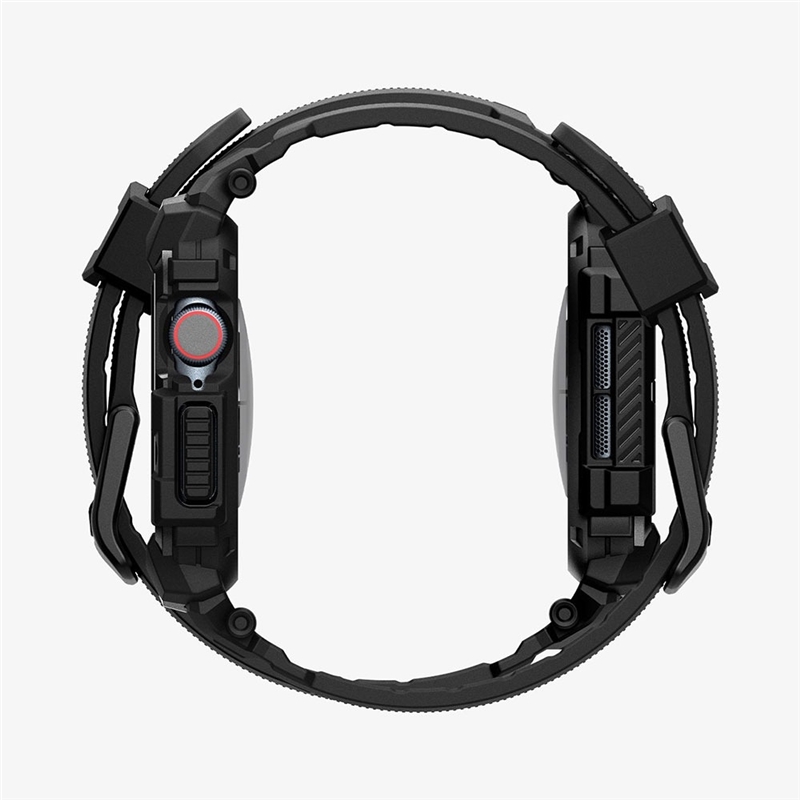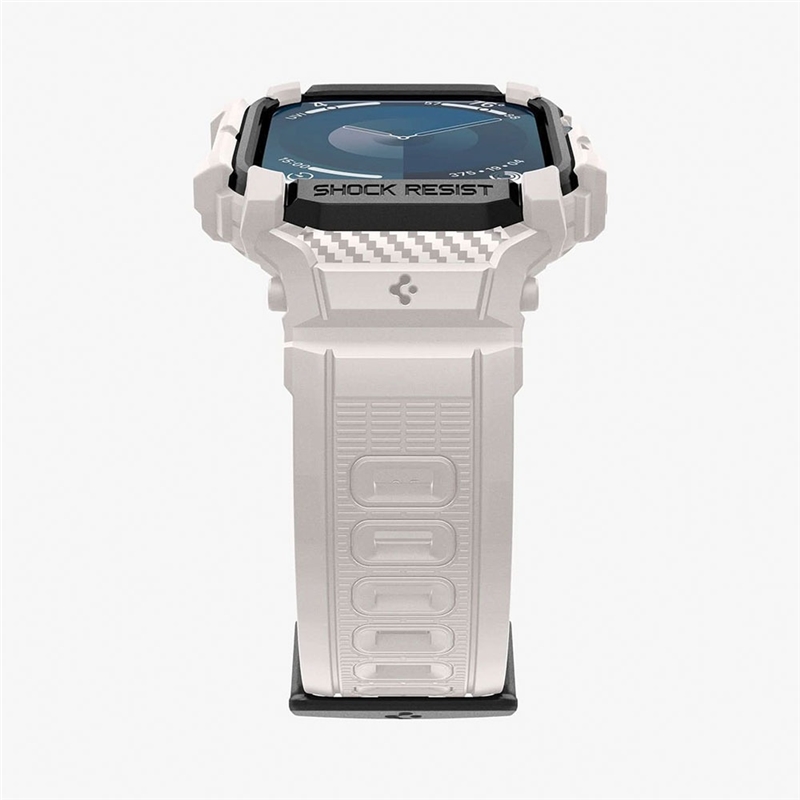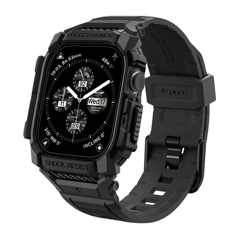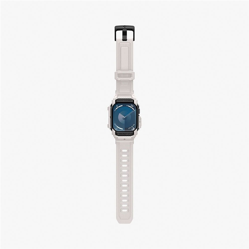بند و کاور مدل Rugged Armor Pro از برند اسپیگن، ترکیبی از استحکام و انعطاف‌پذیری را ارائه می‌دهد. این محصول یک قاب محافظ یکپارچه همراه با بندی قابل تنظیم است که ضمن ارائه حفاظت کامل، استفاده از ساعت را راحت و بدون محدودیت می‌کند. ساخته شده از TPU انعطاف‌پذیر و مقاوم، این کاور به‌خوبی از اپل واچ شما در برابر ضربات و خط و خش محافظت می‌کند.