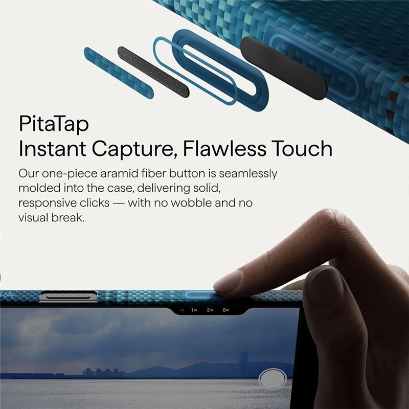 ضخامت فوقالعاده کم این قاب (حدود ۰.۶۵ میلیمتر) باعث میشود حس طبیعی بدنه آیفون 17 پرو مکس کاملاً حفظ شود، در حالی که از گوشی در برابر خط و خش، سایش و ضربات سبک محافظت میکند. فناوری **PitaTap** نیز امکان اتصال هوشمند به لوازم جانبی اختصاصی پی تاکا را فراهم کرده و تجربهای متفاوت از کار با گوشی ارائه میدهد.
