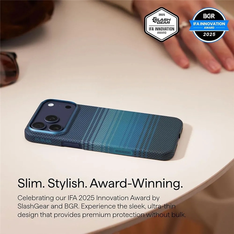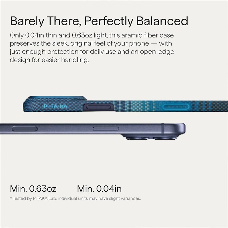 ضخامت کمتر از ۱ میلیمتر باعث میشود فرم اصلی آیفون 17 پرو مکس حفظ شود. PITAKA با مهندسی دقیق در ساختار و انحنای لبهها، قابی ساخته که انگار بخشی از خود آیفون است، نه چیزی اضافه بر آن.