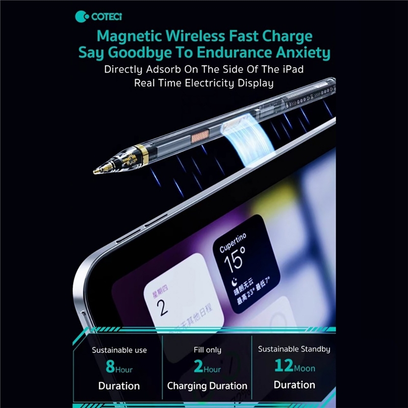 یکی دیگر از ویژگی‌های فوق‌العاده قلم کوتسی، شارژ سریع بی‌سیم مغناطیسی آن است. این قلم از فناوری مغناطیسی برای شارژ استفاده می‌کند که این امکان را به کاربر می‌دهد که بدون نیاز به سیم و کابل، قلم خود را به راحتی شارژ کند. این سیستم شارژ بی‌سیم به شما این اطمینان را می‌دهد که همیشه قلمتان آماده به کار باشد و شما دیگر نیازی به نگرانی در مورد کابل‌های اضافی نخواهید داشت. به‌علاوه، شارژ سریع این قلم به شما این امکان را می‌دهد که ظرف مدت زمان کوتاهی، قلم خود را شارژ کرده و برای استفاده مجدد آماده کنید.
