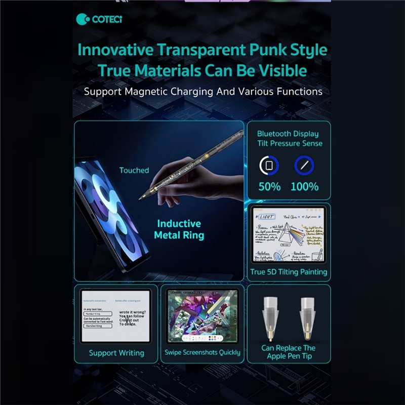 قلم آیپد شفاف کوتسی Coteci Punk Transparent Drawing Pen 62012