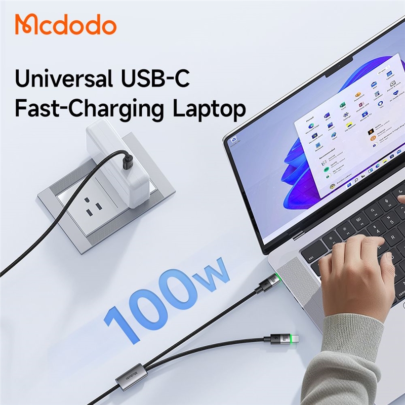 این کابل با دو سر خروجی Type-C و Type-C/Lightning ترکیبی و توان فوق‌العاده ۱۰۰ وات واقعی (20V/5A)، امکان شارژ سریع انواع گوشی، تبلت و لپ‌تاپ را فراهم می‌کند.