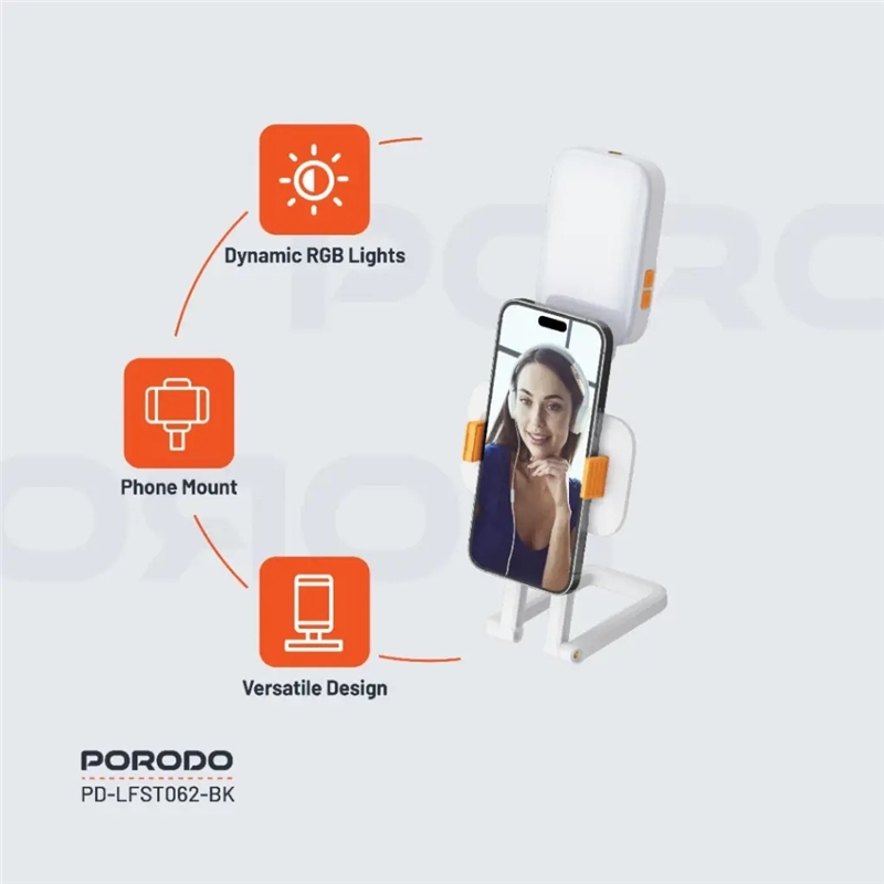 استند رومیزی و چراغ تاشو پرودو Porodo PD-LFST062-BK Foldable RGB Fill Light Stand
