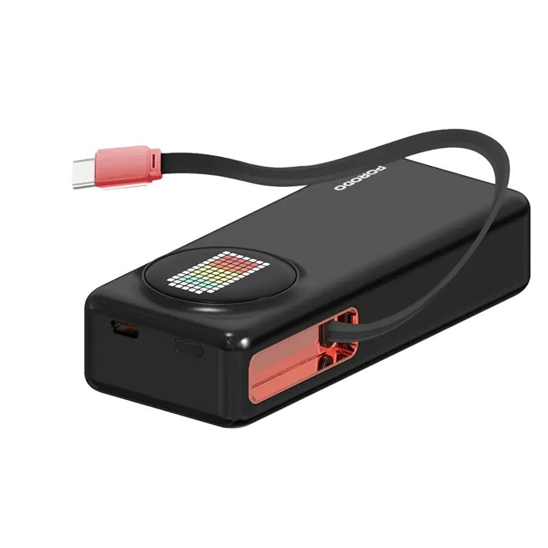 پاوربانک 10000 پرودو Porodo Animated Display PD-PBFCH072-BK توان 45 وات همراه با کابل متصل