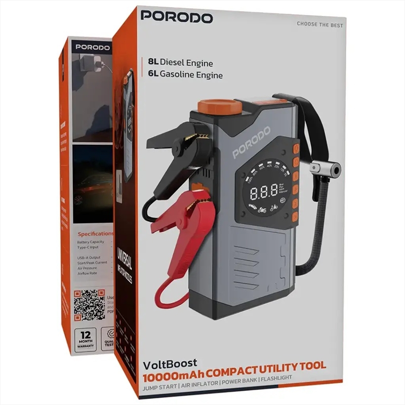 پاوربانک 10000 و کمپرسور باد و جامپ استارتر خودرو پرودو Porodo PDPBA10GY
