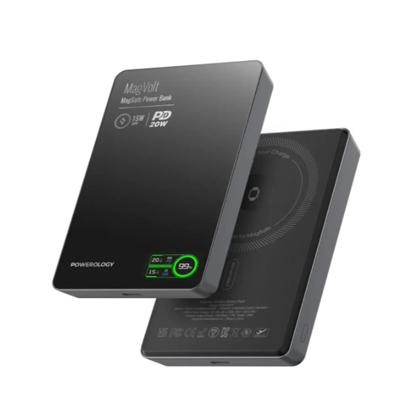 پاوربانک Powerology MagVolt PPBCHA75BK یک پاوربانک هوشمند و چندمنظوره است که با پشتیبانی از شارژ بی‌سیم مگ‌سیف (MagSafe)، پورت‌های سریع و طراحی حرفه‌ای، انتخابی ایده‌آل برای کاربران گوشی‌های هوشمند به‌ویژه آیفون محسوب می‌شود.