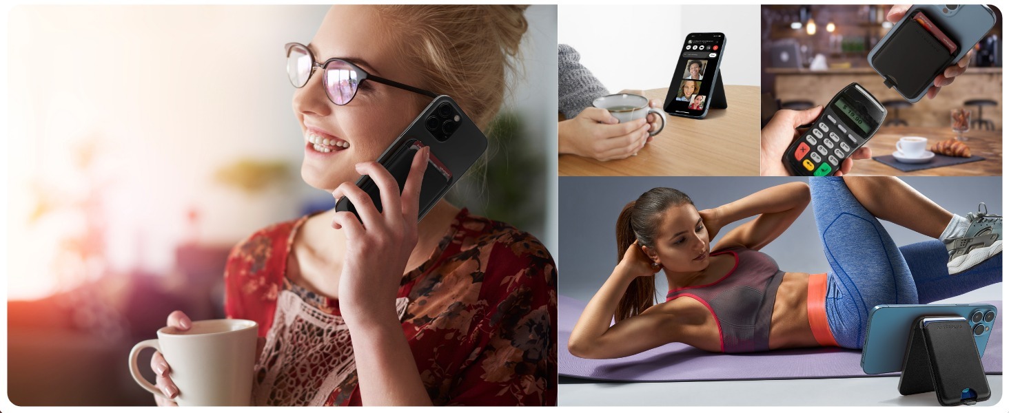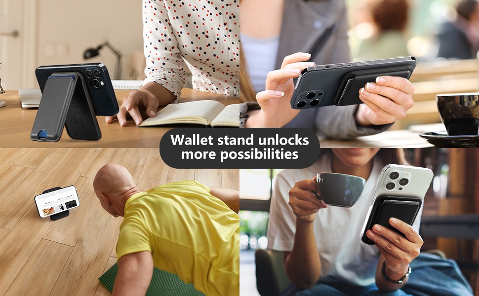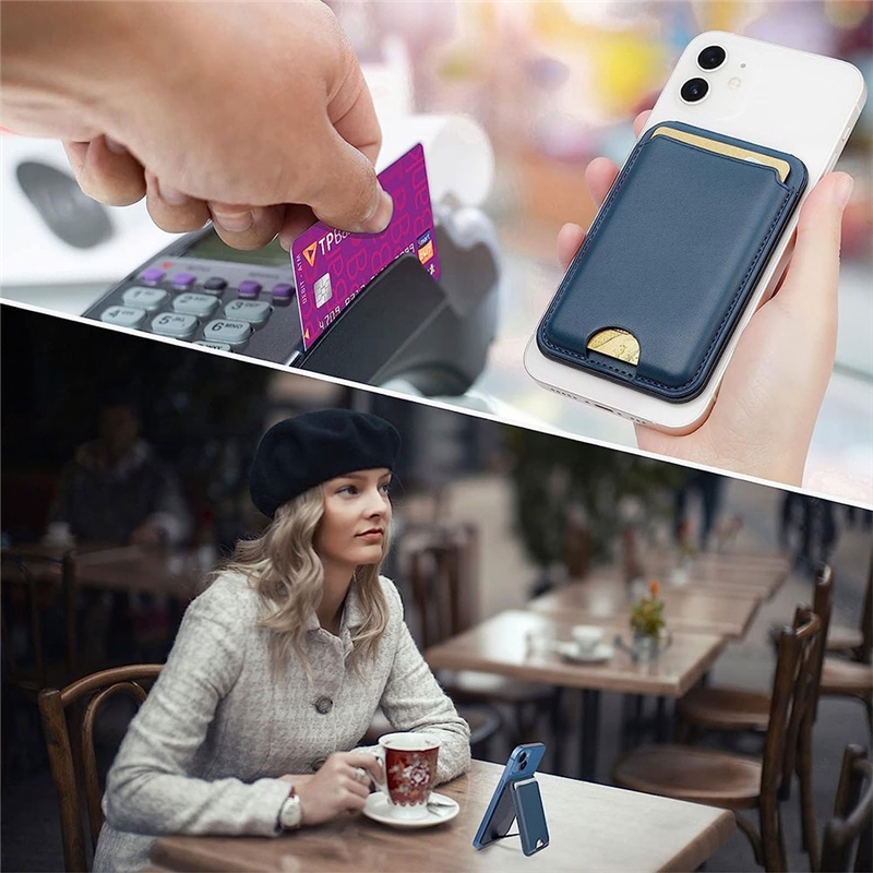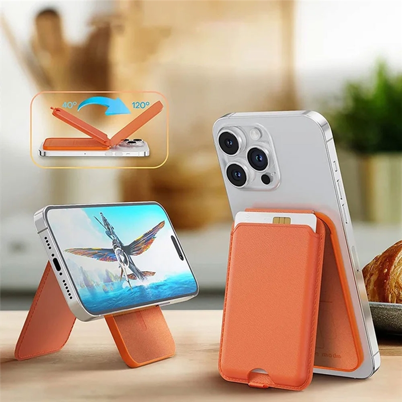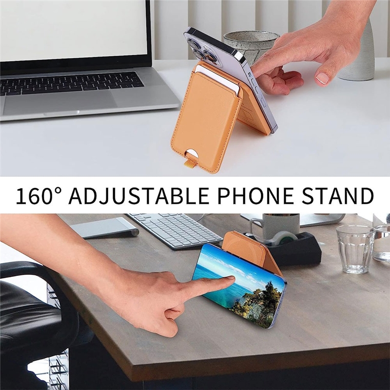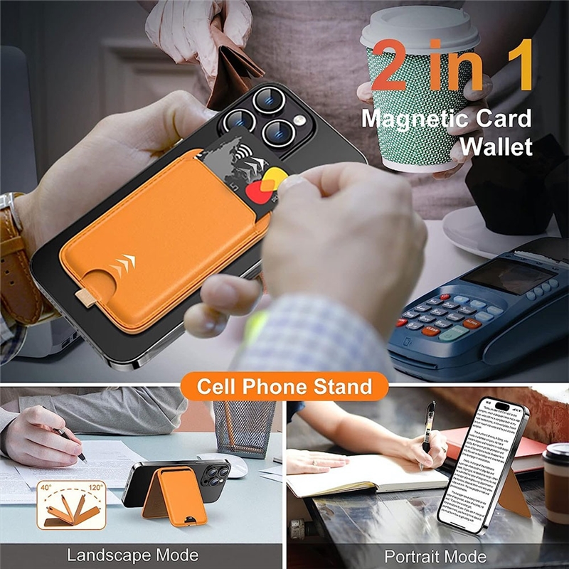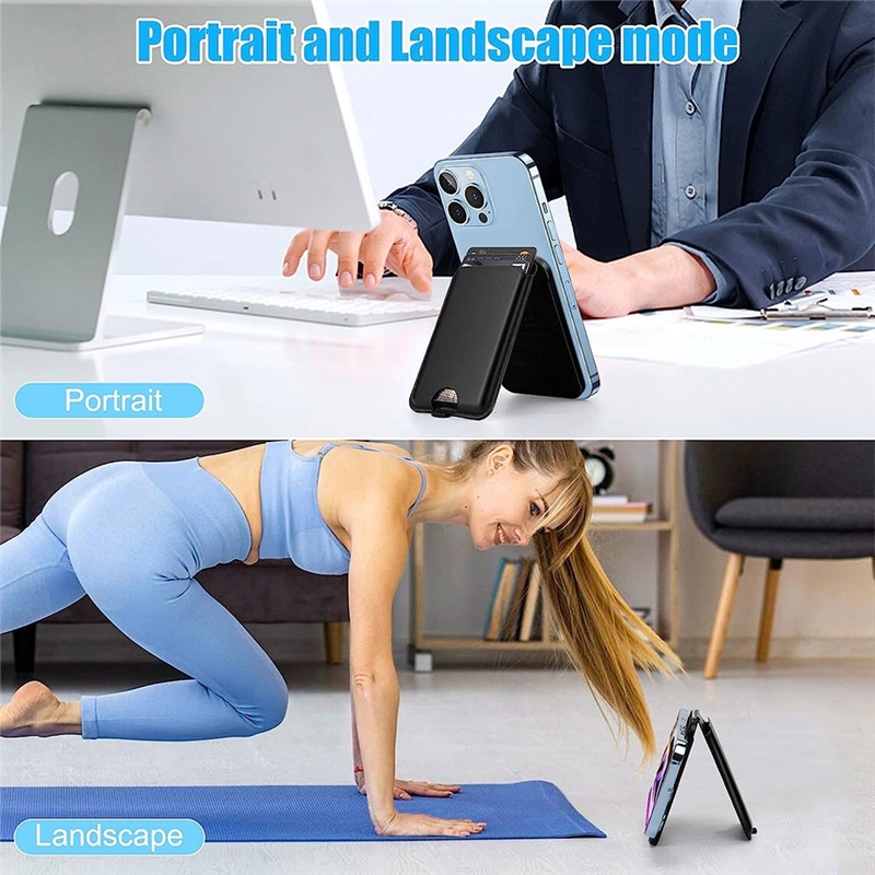 استند 2 در 1 با قابلیت ایستاده‌ای در حالت عمودی یا افقی: یکی از ویژگی‌های برجسته این جاکارتی و استند مگنتی این است که به شما امکان ایستاده‌ای در حالت‌های عمودی و افقی را می‌دهد. این ویژگی به شما اجازه می‌دهد تا بتوانید گوشی خود را برای خواندن، تماشای ویدئوها یا مکالمه تصویری به راحتی و به دلخواه خود قرار دهید.