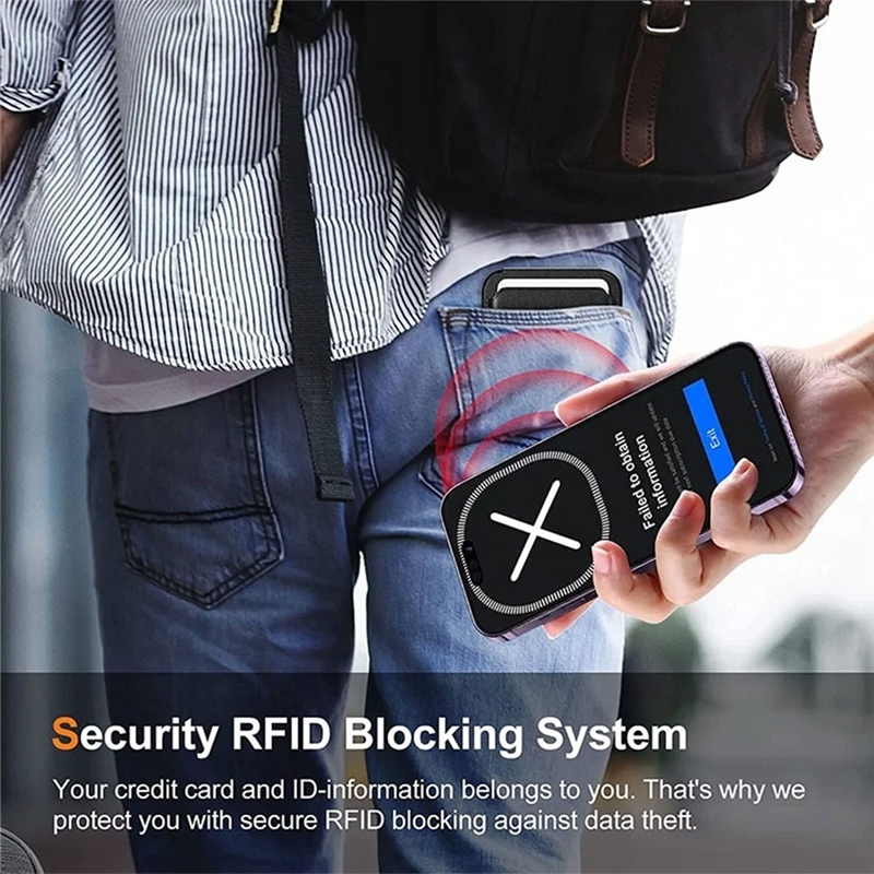 نگهداری عملی کارت و کیف RFID: در این جاکارتی، یک نشانه کارت ایمنی وجود دارد که به شما امکان می‌دهد تا حداکثر 3 کارت را به صورت امن در آن ذخیره کنید. طراحی سوراخ هرمی در پایین این جاکارتی نیز به شما دسترسی سریع و آسان به کارت‌هایتان را فراهم می‌کند.