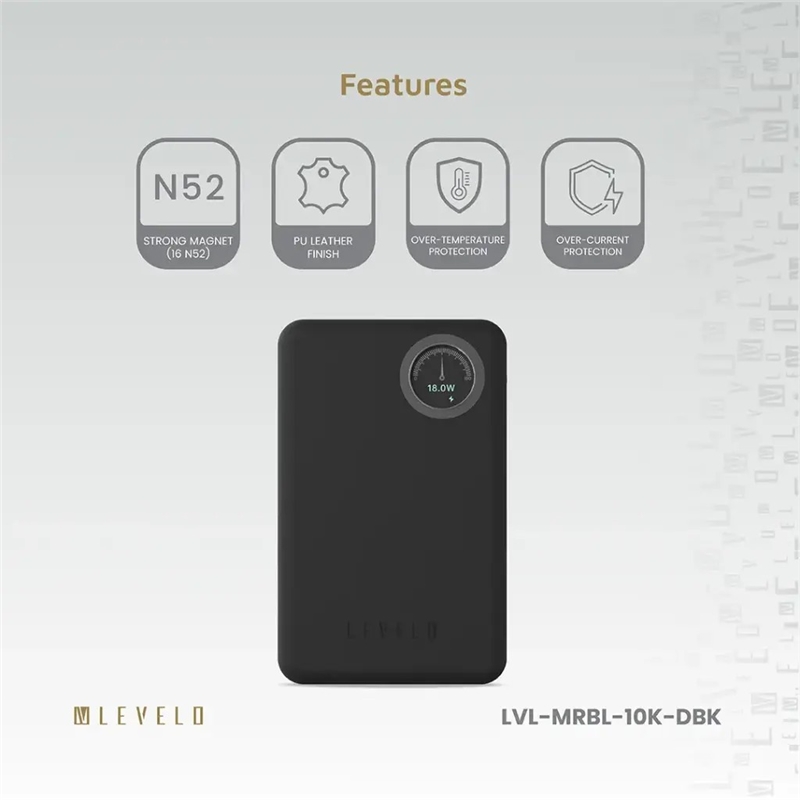 پاوربانک وایرلس Levelo Marbella MagSafe Leather مدل LVLMRBL10KORG ترکیبی از شارژ بی‌سیم سریع، طراحی چرمی لوکس و قابلیت حمل بالا است که برای کاربرانی طراحی شده است که می‌خواهند در هر لحظه انرژی دستگاه خود را تامین کنند—بدون کابل و با ظاهری شیک.
