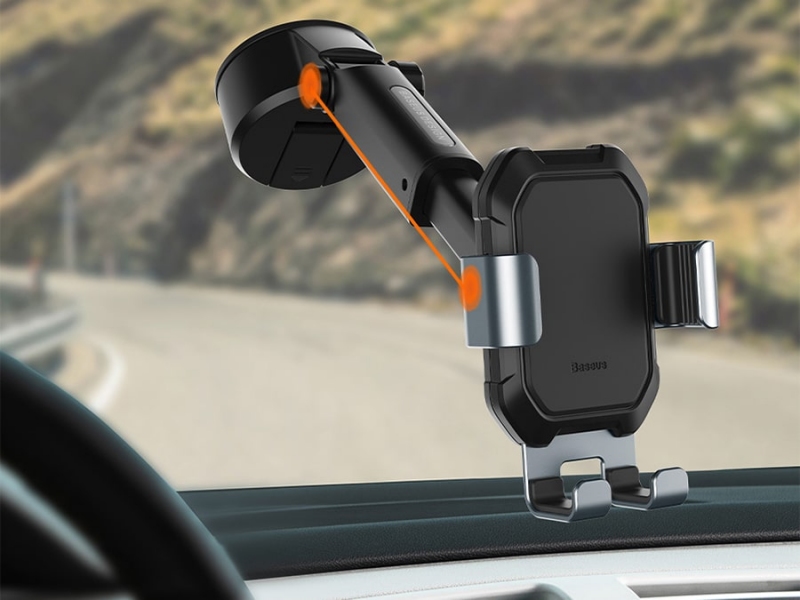 هولدر های موبایل موجود در بازار یا به دریچه کولر متصل میشوند و یا با چسب یه شیشه  یا داشبورد متصل میشوند که هر کدام معایبی را دارند. هولدر موبایل بیسوس، پایه مکشی قدرتمندی دارد که با یک فشار میتوان بر روی داشبورد و یا شیشه جلویی خودرو نصب کرد. از مزایای این سیستم میتوان به جدا کردن آساب و تغییر مکان در هر لحظه اشاره کرد بدون این که رد پایی از خود بر روی شیشه و یا داشبورد جا بگذارد. این پایه قابل شستشو بوده و می توان به راحتی هنگام کثیف شدن، شست و همچنین قدرت مکشی بسیار بالایی دارد که در دست انداز های زیاد جاده همواره در محل نصب خود بصورت ایمن باقی میماند. این پایه مکشی از طریق یک کلید کنترل می شود.