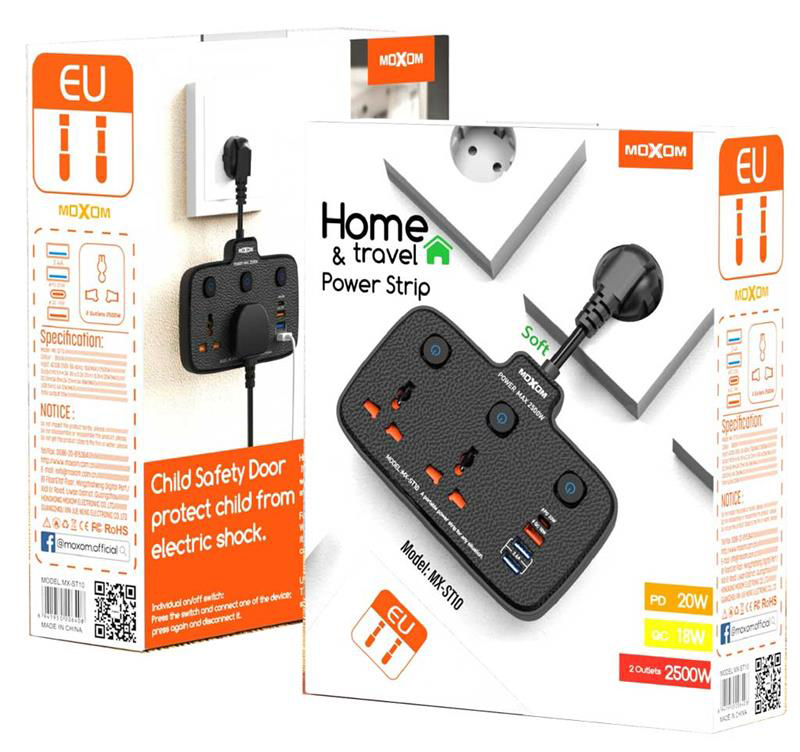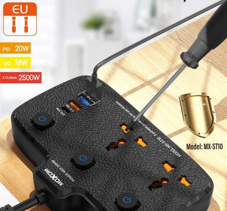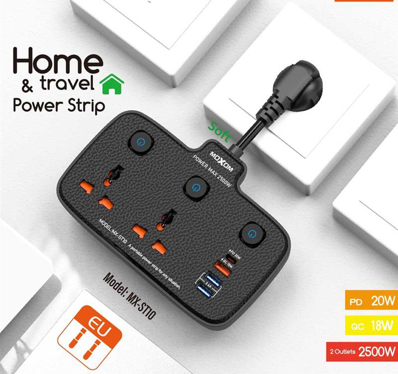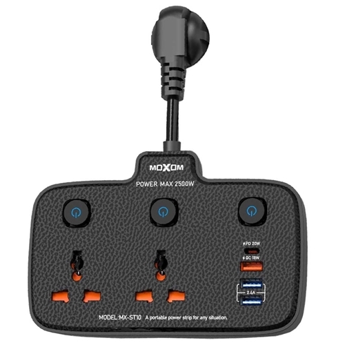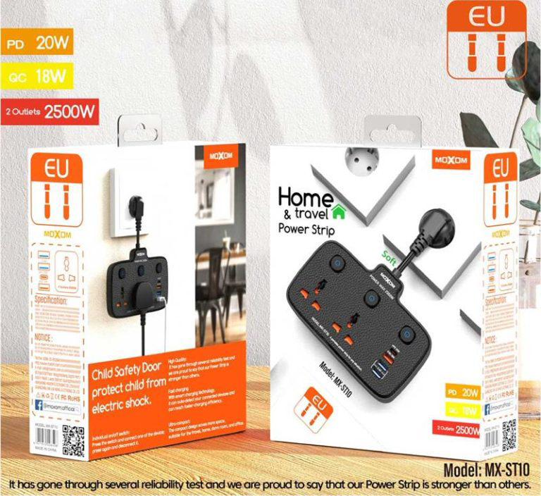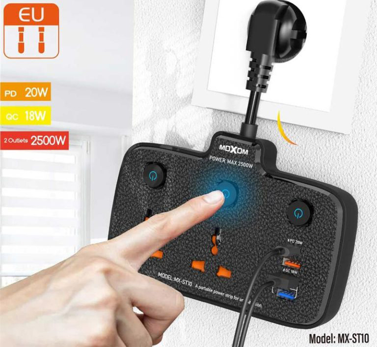 یک محصول بسیار کارامد از برند موکسوم با نام MX-ST10. این وسیله یک چند راهی برق، مبدل برق و همچنین یک شارژر همراه است که با توجه به سایز کوچکی که دارد قابل حمل و قابل استفاده هم در خانه و هم در سفر و مسافرت است. بار ها و بار ها به این مشکل برخوردیم که در خانه یا محل اقامتمان با مشکل پریز برق رو به رو شده ایم . چرا که لوازم الکتریکی متعددی را مانند گوشی تلفن همراه، لپ تاپ، سشوار و .. کنار خود حمل میکنیم. تازه برخی از این وسایل ما هستند که نیاز به یک تبدیل 3 به 2 دارند و اگر مبدل آن را ها فراموش کنیم دیگر قابل استفاده نخواهد بود. چند راهی برق و شارژر همراه موکسوم مدل SM-ST10 همه این مشکلات را یکجا برای شما برطرف میکند. کافیست تنها یک پریز برق در محل مورد نظرتان داشته باشید و SM-ST10 را به آن متصل کنید. این وسیله به راحتی هرچه تمام تر از آن آویز میشود و شما میتوانید تا 2 عدد آداپتور خود حال چه 2 شاخه یا چه 3 شاخه به آن متصل کنید و ورودی برق ایمنی داشته باشید . 2 ویژگی بسیار مهم که موکسوم آن هارا رعایت کرده، جدای از طراحی زیبا، محافظ کودک و دکمه قطعی و وصلی برق است . میتوانید در صورت نیاز با فشردن دکمه های قرار گرفته در بالای هر پریز ورودی برق به دستگاه های خود را کنترل کنید. جهت جلوگیری از آسیب دیگر نیاز به خروج کردن آداپتور خود از پریز ها ندارید و میتوانید تنها با فشردن یک دکمه این مهم را داشته باشید. جنس بدنه چند راهی برق و شارژر همراه موکسوم مدل SM-ST10 از پلاستیک ABS و PC است و روی آن طرحی زیبا قرار دارد تا بتوانید در محیط خانه نیز ضمن حفظ زیبایی منزل از کارایی آن بهرمند شوید. دیگر ویژگی مهم موکسوم SM-ST10 پورت های USB و Type-C آن است . از این وسیله میتوایند به عنوان یک شارژر دیواری نیز در هر جا استفاده کنید. در قسمت بالا دکمه پاور ، کمی پایین تر از آن در گاه USB -Type-C مشاهده میکنید که مجهز به شارژر ایمن PD و با توان 20W است و میتوانید به صورت Fast Charge شارژ سریع گوشی همراهتان را شارژ کنید، پایین تر از آن نیز یک USB مجهز به QC کوئیک شارژ با توان خروجی 18W است . پایین تر از ان نیز دو درگاه USB دیگر با جریان 2.4A وجود دارند که جهت شارژ گوشی همراه و یا دستگاه هایی مانند هندزفری های بلوتوثی، ساعت هوشمند و .. که شدت کمتری نیاز دارند استفاده کنید.