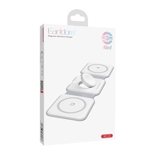 شارژر وایرلس 4 کاره ارلدم EARLDOM Magnetic Wireless Charger ET-WC20 مناسب برای شارژ هندفری،گوشی و اپل واچ دارای مگنت قابل حمل