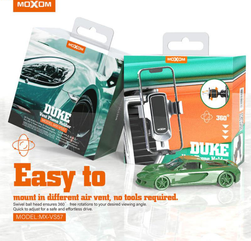 نگهدارنده گوشی موبایل موکسوم مدل MX-VS57 از طریق پایه نگهدارنده خود بر روی داشبورد یا شیشه خودرو شما به راحتی نصب می شود و گوشی شما را به خوبی نگه می دارد. نگهدارنده گوشی موبایل موکسوم مدل MX-VS57از دو بازو در دو طرف و یک پایه نگه دارنده تشکیل شده که به صورت مثلثی با یکدیگر در ارتباط هستند. زمانی که گوشی خود را بر روی آن قرار می دهید نگهدارنده گوشی موبایل موکسوم مدل MX-VS57 به سمت پایین فشار داده می شود و دو بازو به سمت داخل هدایت می شود و گوشی شما را میان خود نگه میدارند. اصطلاحاً به این فرم از نگهداری توسط هولدر، جاذبه ای می گویند که با توجه به وزن گوشی بازوهای آن باز و بسته میشوند. پد پشتی و نگهدارنده گوشی موبایل موکسوم مدل MX-VS57 قابلیت چرخش 360 درجه دارد و این امر باعث شده تا شما به راحتی بتوانید زاویه دید خود را تنظیم کرده و در بهترین حالت از گوشی استفاده کنید. از ویژگی جذاب هولدرهای چسبی موکسوم ، جنس چسب آن است که بسیار مقاوم است و در صورت جدا شدن فقط کافیست چسب آن را زیر آب بگیرید تا مجدد قابل استفاده شود. قبل از چسباندن روی شیشه و یا داشبورد صاف خود، حتما محل چسباندن را تمیز کنید تا به خوبی بچسبد.