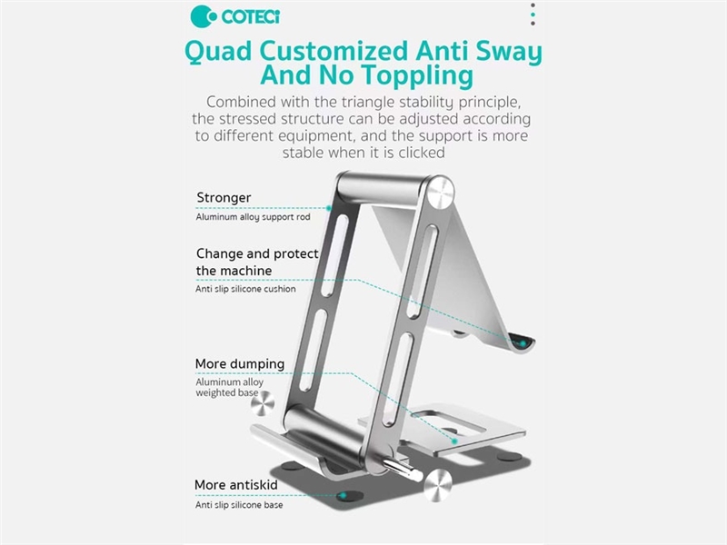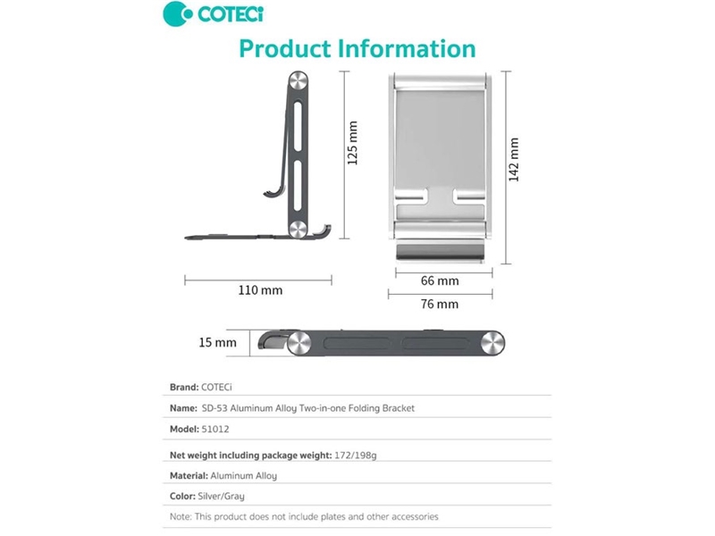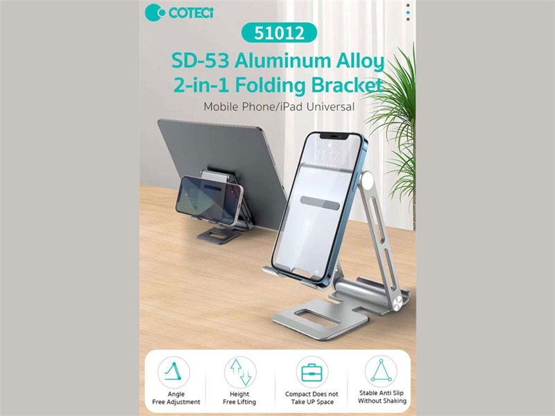 هولدر گوشی موبایل و تبلت دو طرفه تاشو کوتتسی Coteetci SD-53 Aluminum Alloy 2 in 1 Folding Bracket 51012