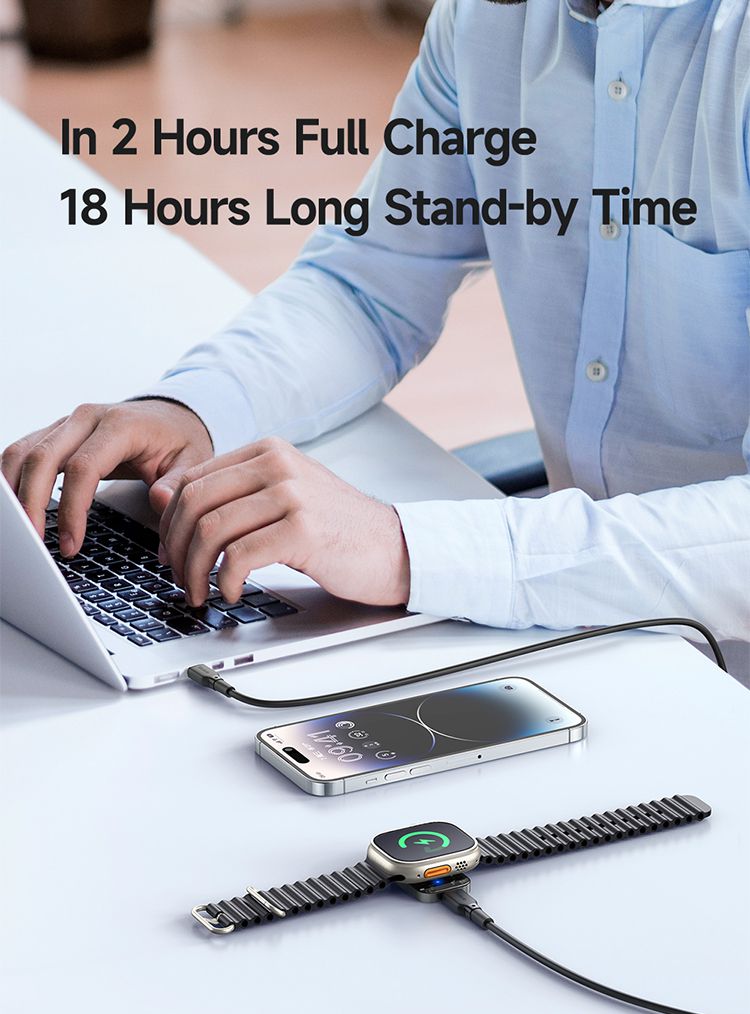 طراحی مغناطیسی منحصر به فرد: این شارژر با داشتن قطعه مغناطیسی قابل جداشدن که به پشت دستگاه واچ متصل می‌شود، امکان شارژ آسان و بدون نیاز به جا به جا کردن دستگاه را فراهم می‌کند. این طراحی منحصر به فرد به کاربران اجازه می‌دهد تا دستگاه را با دقت بر روی شارژر قرار داده و به وجود آورنده تنش‌های مکانیکی را به حداقل برسانند.