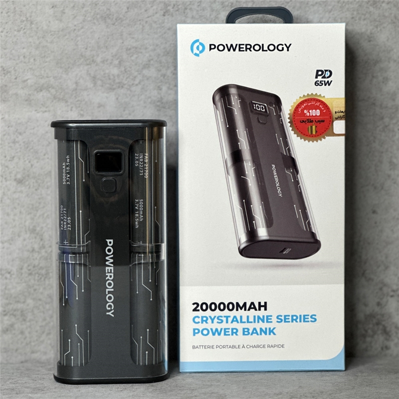 پاور بانک Power Bank پاورولوژی POWEROLOGY کریستالی مدل PPBCHA25 20000 mAh ظرفیت پاوربانک 20 هزار میلی آمپر توان خروجی 65 وات بدنه کریستالی دو پورت خروجی