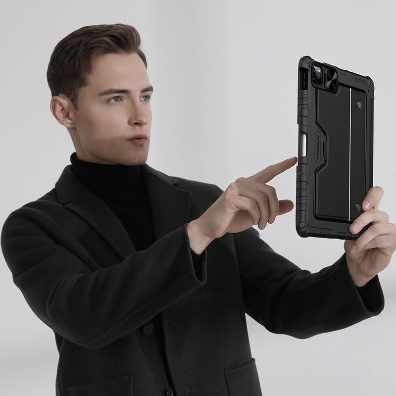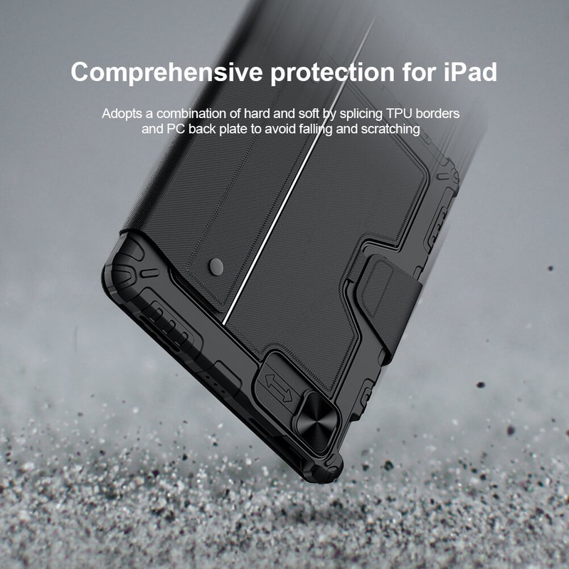 کاور آیپد Apple iPad 10.2 2019 / 2020 / 2021 Nillkin Bumper Combo کیبورد دار دور تا دور بدنه دستگاه را میپوشاند و محافظتی 360 درجه از آن به عمل میآورد. این کیف دارای مقاومت بالای بوده و در برابر ضربه مقاوم است. البته به این معنی نبوده که در برابر ضربات شدید نیز مقاوم است. جنس این کاور از TPU و PC ساخته شده که دارای مقاومت بالایی می باشد.