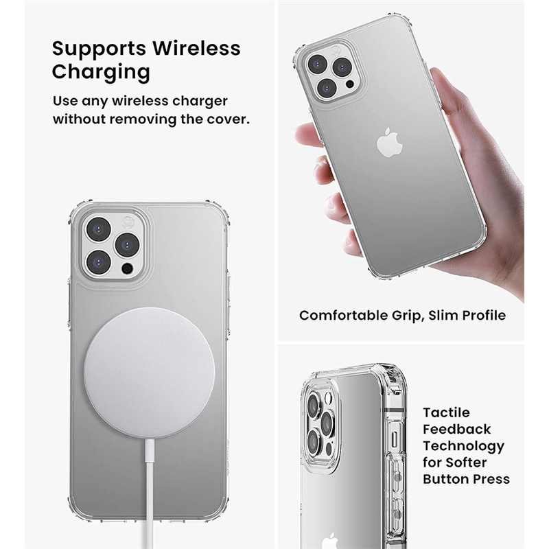 “قاب ESR آیفون ۱۳ پرو مکس | ESR Ice Shield Case iPhone 13 Pro Max” در دو رنگ کریستالی شفاف و کریستالی مات می باشد که قسمت پشتی آن محکم و از متربال شیشه ای می باشد؛ اما بامپری نسبتا انعطاف پذیر دارد تا گوشی به آسانی درون آن قرار بگیرد. این قاب محافظ کاملا با شارژر وایرلس اپل و سایر شارژر وایرلس ها سازگار می باشد. همجنین این قاب محافظت خوبی از گوشی ۱۳ پرو مکس خواهد داشت.