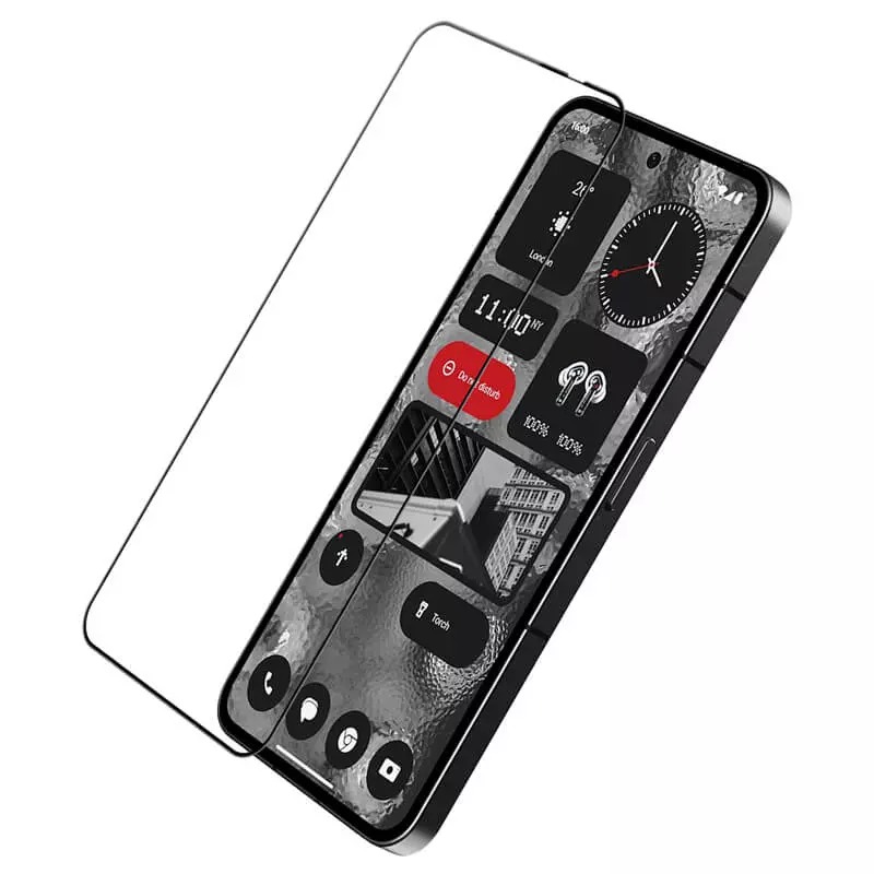 گلس نیلکین ‌Nothing Phone 2 ناتینگ از پوشش 9H بهره برده است که به خوبی از صفحه نمایش در برابر خط و خش افتادن و خرد شدن جلوگیری می کند و به همین دلیل می توانید با خیالی راحت تلفن همراه را در جیب شلوار، کیف و... قرار دهید و نگران خراشیده شدن صفحه نمایش گوشی به وسیله دسته کلید و وسایل تیزی از این قبیل بر روی آن نباشید.