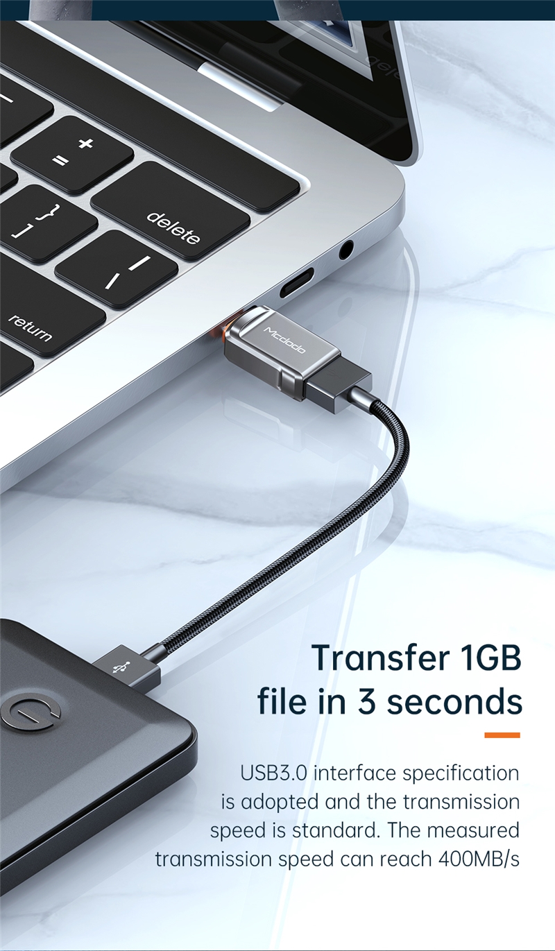 او تی جی ها در واقع تبدیلهایی هستند که میتوانند یکی از درگاههای گوشی شما را به یو اس بی تبدیل کنند. با درگاه یو اس بی شما میتوانید به راحتی به انتقال اطلاعات و فایل بپردازید و فلش مموری خود را به گوشی متصل کنید. کمپانی Mcdodo با ساخت تبدیل او تی جی Type C به USB3.0 مک دودو OT-8730 این امکان را به وجود آورده است تا دیگر برای انتقال اطلاعات به گوشی نیازی به کامپیوتر نداشته باشید.