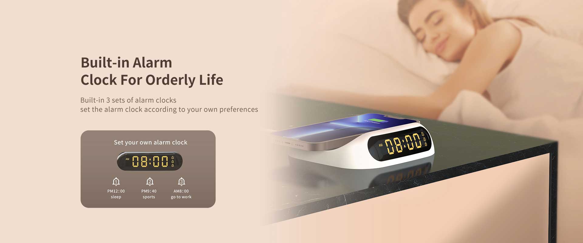 نمایشگری که در بخش جلویی این استند و شارژر رسی وجود دارد تایم را نشان میدهد و قابل تنظیم روی ساعت مشخص برای زنگ خوردن هم هست. امکان تنظیم روی سه زمان را برایتان فراهم کرده و علاوه بر بیدار شدن برای برنامهریزیهای تایم کاری یا درسی هم بسیار کاربرد خواهد داشت.