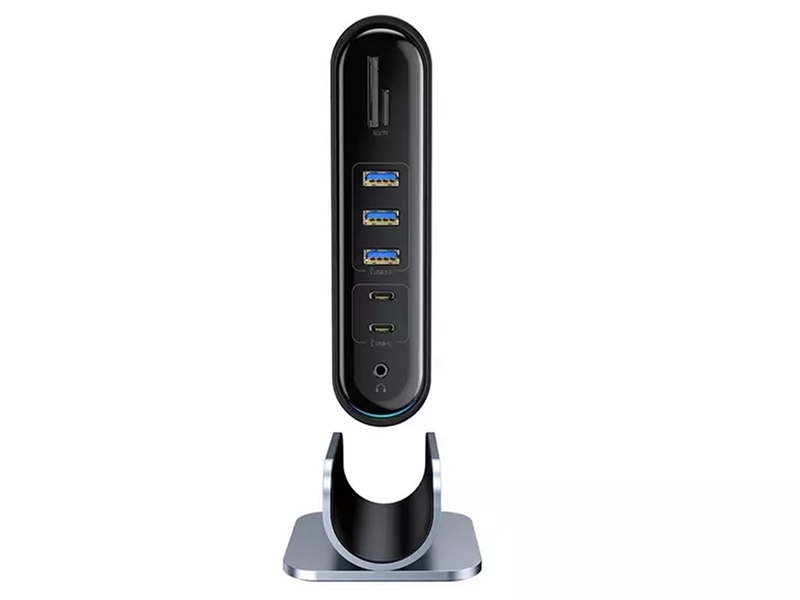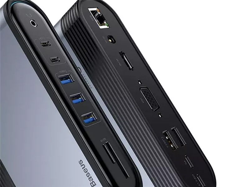 به طور کلی تعداد 16 پورت در مجموع روی این هاب قرار داده شده است که شامل درگاه های: VGA، USB3.0 ، USB2.0 ، RJ45 ، Type-C ، TF ، SD ، AUX، HDMI و DC هستند و بنا به نیاز خود می توانید از آن ها استفاده نمایید.