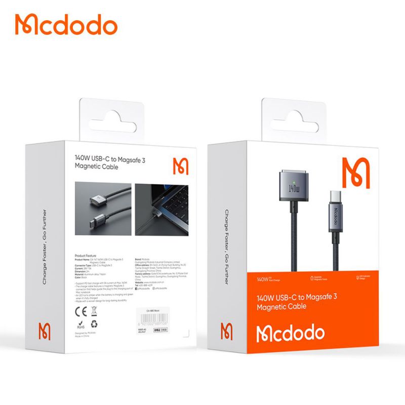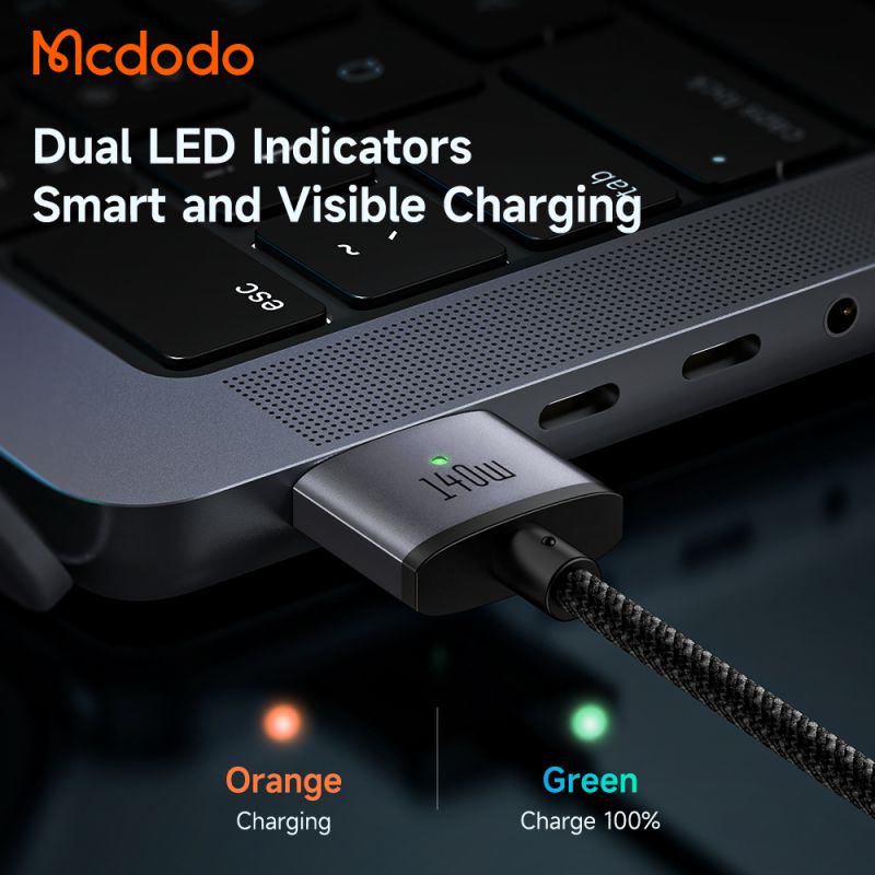 کابل شارژ 140 وات مک بوک تایپ سی به مگ سیف 3 مک دودو مدل MCDODO CA-1470 طول 2متر