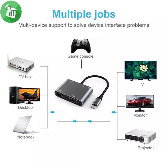هاب 4 پورت تایپ سی کوتسی Coteci UCB-C To HDMI Multiport Adapter 83013