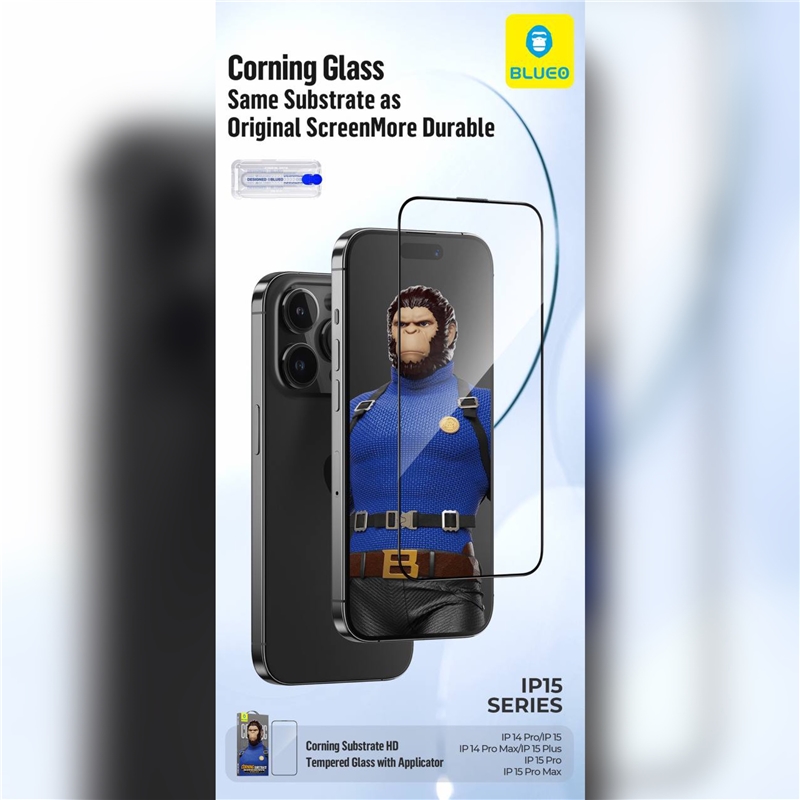 گلس برند BLUEO بهمراه ابزار نصب مدل Corning Glass With Applicator مناسب برای Apple iPhone 15 Pro