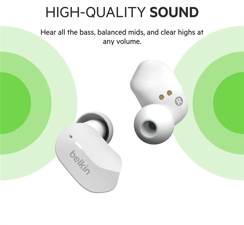 دارای دو میکروفون بر روی هر هدفون، الگوریتم کاهش نویز مهندسی شده توسط Belkin و سه تنظیم از پیش تنظیم شده EQ، این هدفون ها صدایی را که می خواهید بشنوید و در عین حال صداهایی را که نمی خواهید بشنوید، افزایش می دهند و کاملا قابل کنترل هست. با 8 ساعت عمر باتری به ازای هر بار شارژ و 30 ساعت انرژی دیگر در جعبه شارژ USB-C،