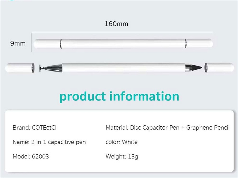 قلم لمسی کوتتسی عالی برای نقاشی ها، خلق هنری، یادداشت برداری و کارهای مشابه میباشد. با استفاده از قلم مخصوص صفحات خازنی علاوه بر سهولت در کاربری می توانید به راحتی آن را درون جیب و یا کیف خود قرار دهید.