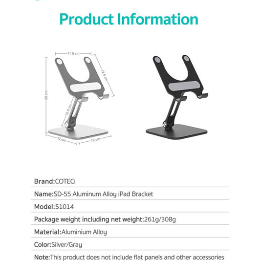 هولدر رومیزی موبایل و تبلت تاشو کوتسی Coteci SD-55 Aluminum Alloy Bracket 51014