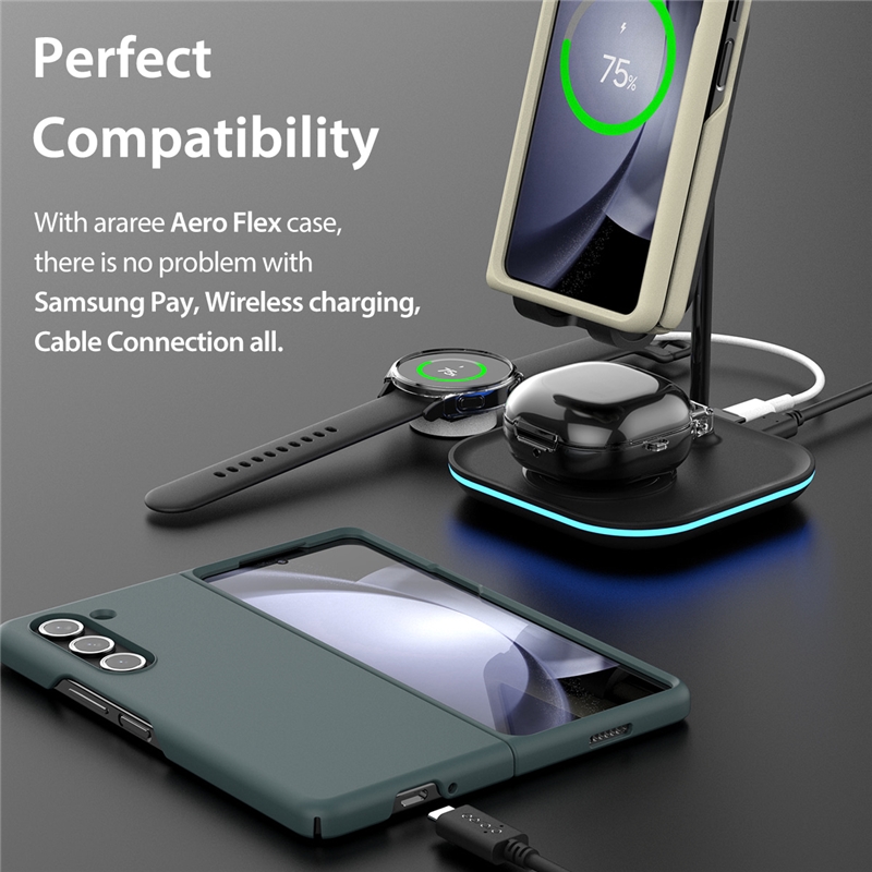 قاب گوشی Samsung Galaxy Z Fold 5 Araree دارای قابلیت استفاده در هنگام شارژ وایرلس از هر دو طرف قاب است. در نتیجه لازم نیست هنگام شارژ وایرلس گوشی تلفن همراه خود، گوشی را از قاب آن خارج کنید.