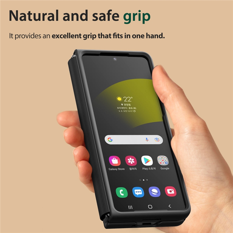 قاب گوشی دار آراری Z Fold 5 به صورتی طراحی شده است که به واسطه فریم پلی کربناتی داخلی خود میتواند ضربات ناگهانی وارده به گوشی را جذب کند.