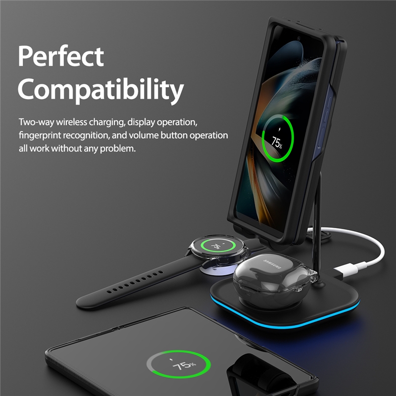قاب گوشی Samsung Galaxy Z Fold 4 Araree دارای قابلیت استفاده در هنگام شارژ وایرلس از هر دو طرف قاب است. در نتیجه لازم نیست هنگام شارژ وایرلس گوشی تلفن همراه خود، گوشی را از قاب آن خارج کنید.