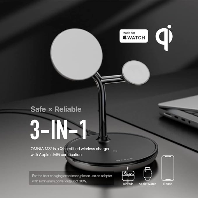 شارژر OMNIA M3+ با فناوری MagSafe درست به پشت آیفون شما متصل می شود و هنگام شارژ آن را در جای خود ایمن نگه می دارد.